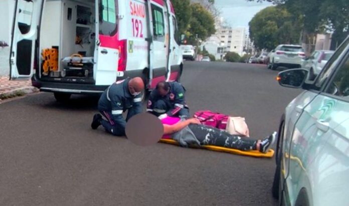 Uma ciclista foi atingida por um veículo. A equipe do Serviço de Atendimento Móvel de Urgência (SAMU) prestou socorro à vítima, que sofreu ferimentos leves. Ela foi encaminhada ao Hospital Nossa Senhora de Fátima para avaliação médica.