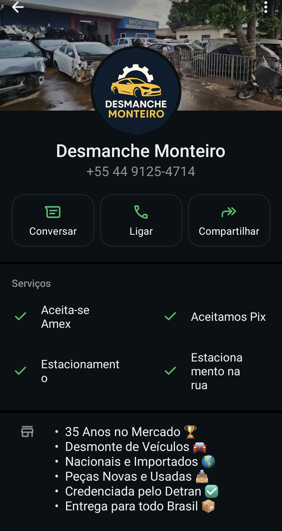 O perfil fraudulento utiliza o nome, logotipo e até imagens da fachada da loja para ganhar credibilidade, como mostra uma das capturas de tela que circulam entre os prejudicados. O número associado ao golpe é o (44) 9125-4714, que não pertence ao Desmanche Monteiro.