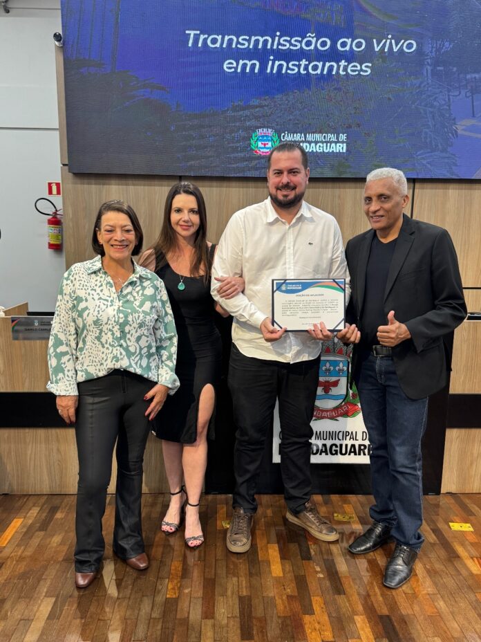 O gestor da Fisiocare, Marcos Furquim, juntamente com sua equipe, recebeu nesta segunda-feira (12) uma Moção de Aplausos da Câmara Municipal de Mandaguari. A homenagem reconhece os relevantes serviços prestados com excelência à população na área da saúde. A proposta foi apresentada pelo vereador Sebastião Alexandre (MDB) e aprovada por unanimidade pelos demais parlamentares.