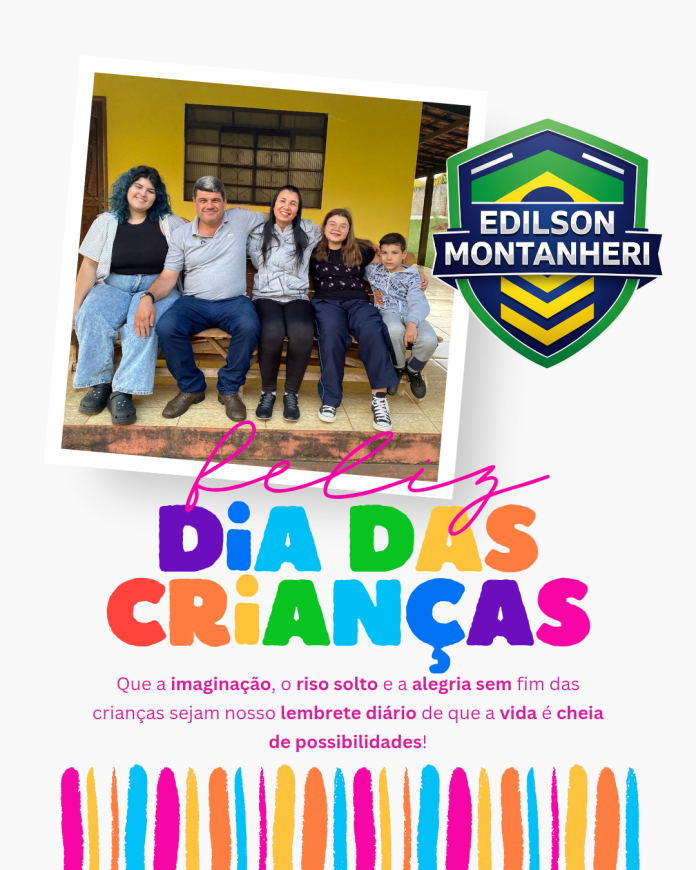 O presidente da Câmara Municipal de Mandaguari, Edilson Montanheri, publicou uma mensagem especial em homenagem ao Dia das Crianças, celebrado neste sábado (12). Em sua mensagem, Montanheri destacou a importância de preservar a alegria, a imaginação e a pureza das crianças no dia a dia.